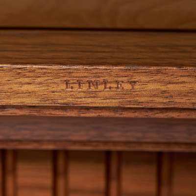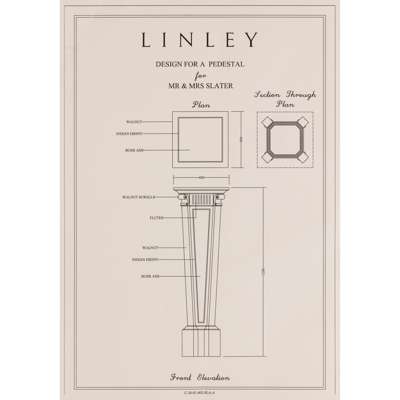 walnut with inlays of burr ash and Indian ebony, stamped LINLEY (twice), together with THE ORIGINAL PRINTED DESIGN