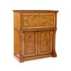 oak, marquetry inlaid with burr oak, the drop-down fall enclosing a fitted interior, with tooled leather skiver