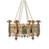 engraved brass, with enamelled decoration, later hanging chains, bears repeating inscription to corona EGO SUM LUX MUNDI (I am the light of the world)