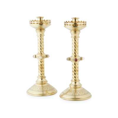PAIR OF GOTHIC REVIVAL ALTAR CANDLESTICKS, CIRCA 1890