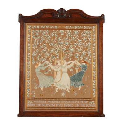 'MERRILY, MERRILY SHALL I LIVE NOW...', ARTS & CRAFTS EMBROIDERED PANEL, 1914