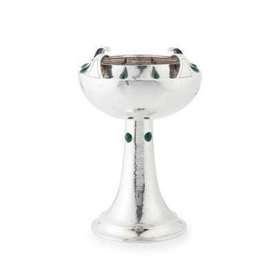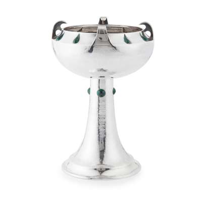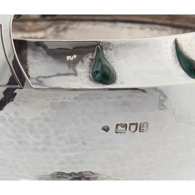 silver, with applied green enamels, stamped manufacturer's marks and hallmarked London 1902