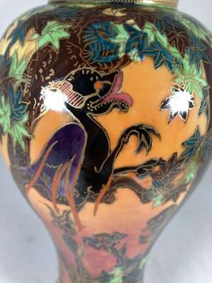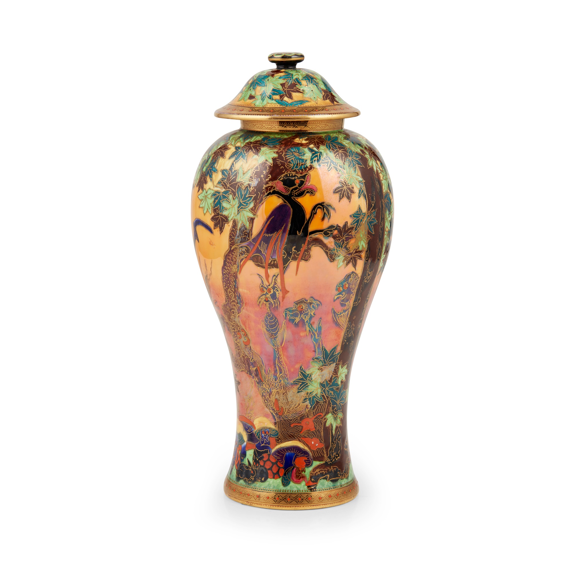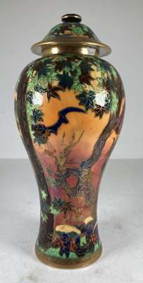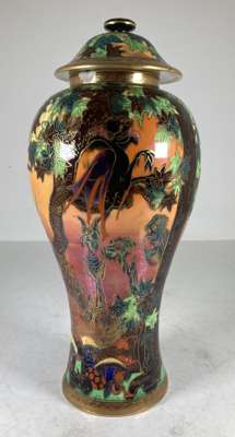 'GHOSTLY WOOD' FLAME FAIRYLAND LUSTRE COVERED VASE, CIRCA 1925