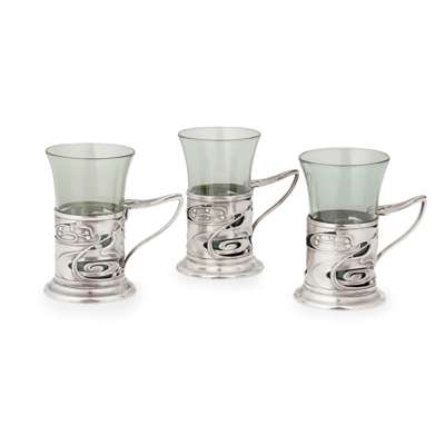 THREE TEA GLASSES AND HOLDERS, LONDON 1900