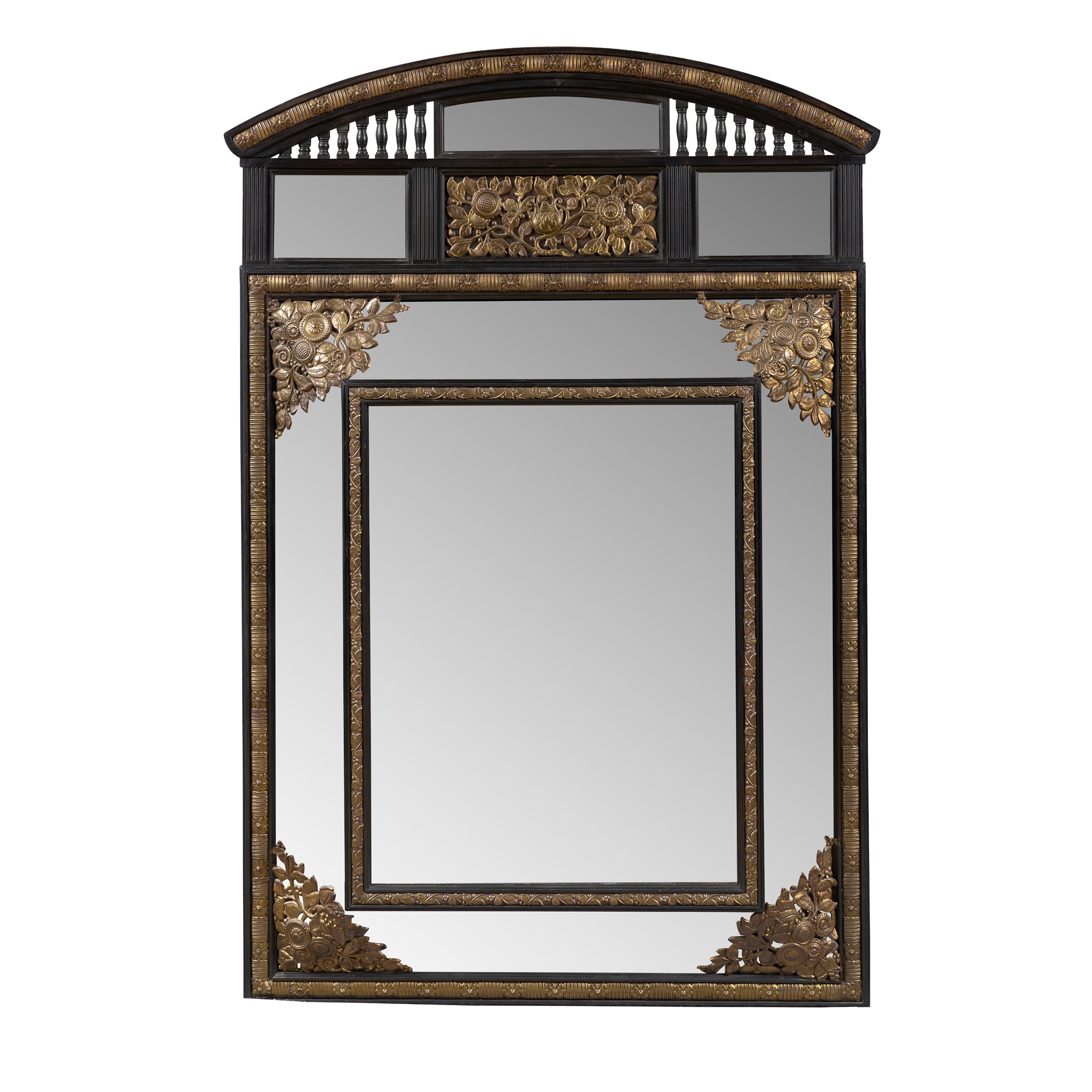 ebonised wood, pierced and embossed brass, mirrored glass plates