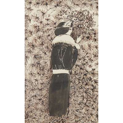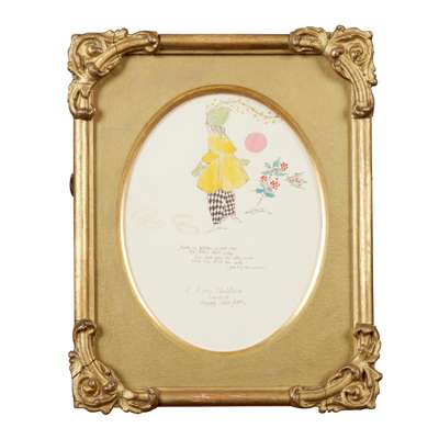 pen & ink, later framed, 11cm x 6.5cm (frame 34cm x 24.7cm); and DESIGN FOR A CHRISTMAS CARD, signed, inscribed and dated ANNIE FRENCH/ 1937, 16cm x 12.5cm (frame 24.3cm x 19cm)