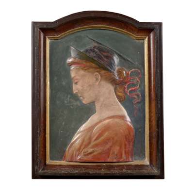 Note: The original bronze bust relief was created by Donatello in 1412 while Contessina de Bardi, wife of the Cosimo de Medici, was still young.