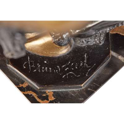 bronze and patinated bronze, on a marble base, signed to the base BRUNO ZACH