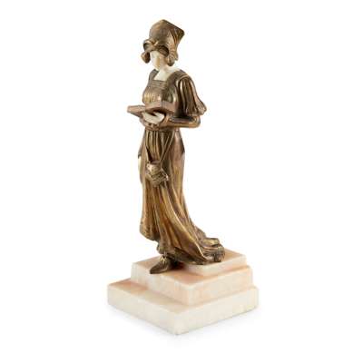 bronze, ivory, raised on an alabaster plinth, signed in the bronze D. ALONZO
