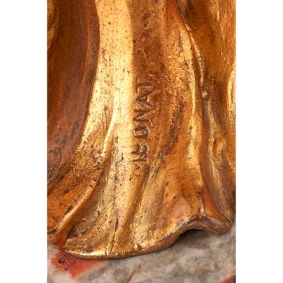 gilt metal, bisque porcelain, cut and frosted glass, raised on a marble plinth, signed MEDNAT