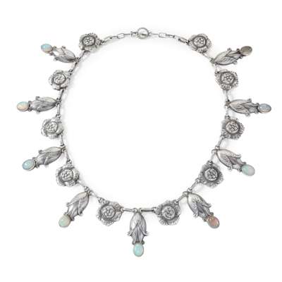 silver and opals, model no. 6, stamped GJ/ 925S/ DENMARK/ 6