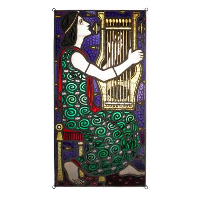 stained and painted leaded glass, incorporating textured and iridescent glass panes