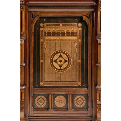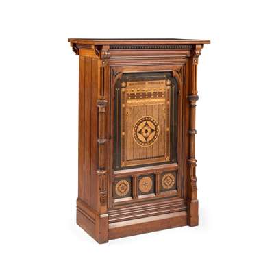 Note: Along with Bruce Talbert, who exhibited a handful of 'medieval' or 'old English' pieces (including the Pericles cabinet now in the Metropolitan Museum, New York) on the Holland & Son stand at the 1867 Paris Exhibition, it is widely accepted that Charles Bevan's 1865 designs for Titus Salt Jr marked a turning point in British taste.