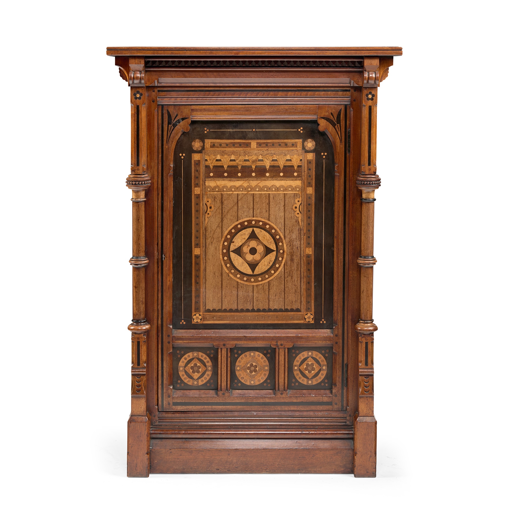 This cabinet was one of a pair, which were split up between two friends shopping in London at Harris Lindsay circa 2000. The other cabinet was purchased by the academic collector Peter Rose (recently sold at Christie's London, 30th September 2021, Lot 110, as part of The Peter Rose and Albert Gallichan Collection (£12,000). Stamped 'GILLOW & CO' '2324' the Christie's example has a note in the provenance mentioning Samlesbury Hall in Lancashire. Although originally built in the 14th century, Samlesbury Hall was acquired by the industrialist Joseph Harrison (1805-1880) in 1862 and given to his son William Harrison (18** -1879). William Harrison spent a vast sum of money refurbishing the interiors and furnishing the hall. The Gillow estimate sketch books, held at the Westminster City archives, have records of him ordering numerous pieces of reformed gothic furniture in 1866. The commission includes pieces in Bevan's distinctive style but also in Pugin's.