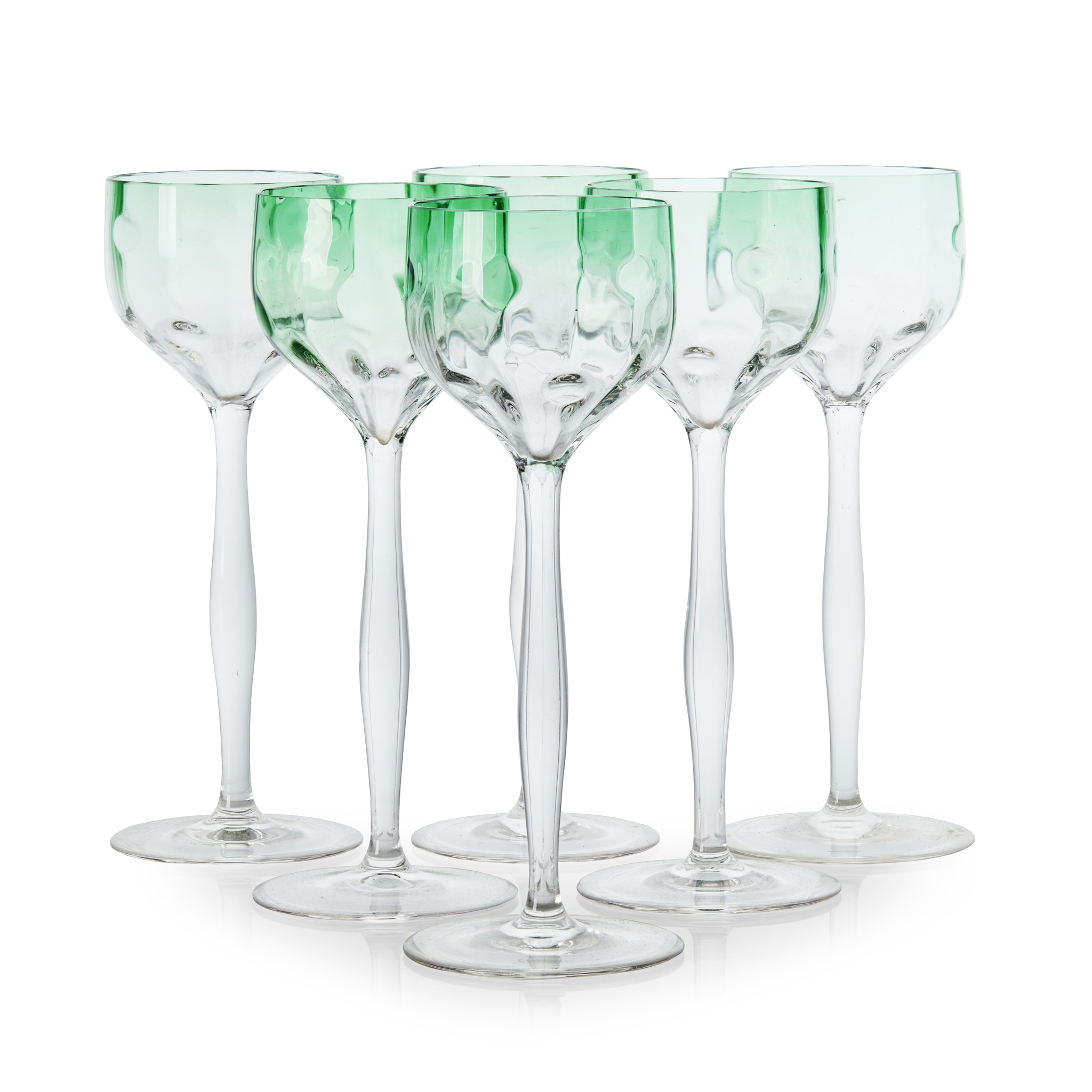 HARLEQUIN SET OF SIX 'METEOR' WINE GLASSES, CIRCA 1900
