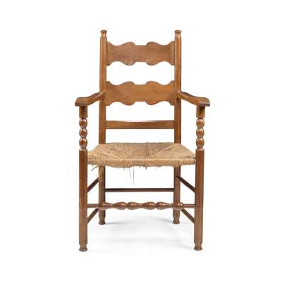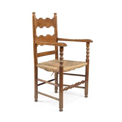Literature: Marechal, Dominique Frank Brangwyn, Bruges 1987, p. 66, pl.55 where a variant of this chair is shown in a contemporary photograph of the Exhibition of Furniture made by E. Pollard & Co., London, 1930.
