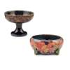 glazed earthenware, green painted signature W MOORCROFT, impressed MOORCROFT/BURSLEM, 21cm diameter; together with a 'POMEGRANATE' TAZZA, glazed earthenware, similarly marked, 20cm diameter