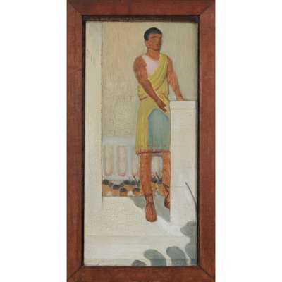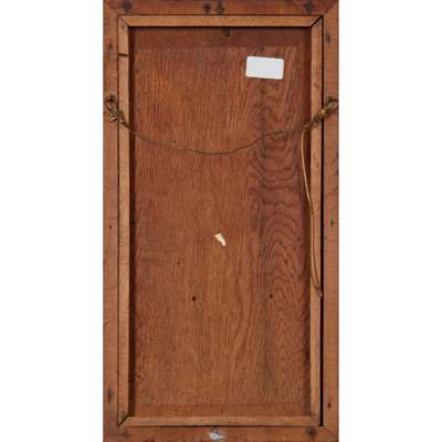 carved and painted wood, signed indistinctly with initials lower right JMCK, 39.8cm x 18.3cm; and another by the same hand, carved and painted wood, signed with initials lower right JMCK, 35.5cm x 26.5cm