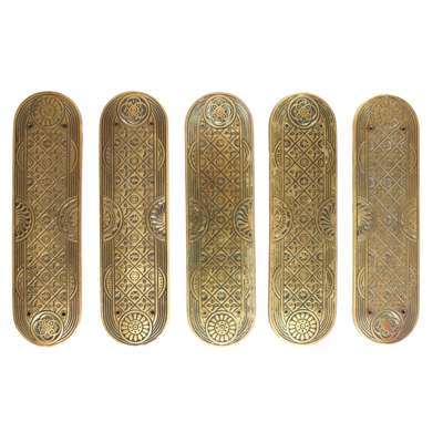 GROUP OF FIVE AESTHETIC MOVEMENT FINGER PLATES, CIRCA 1880