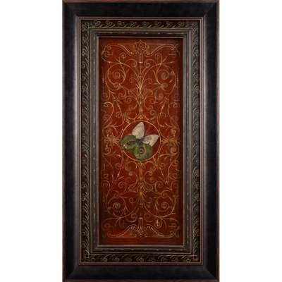 painted wood, with applied butterfly in painted wood and peacock feathers, later frame