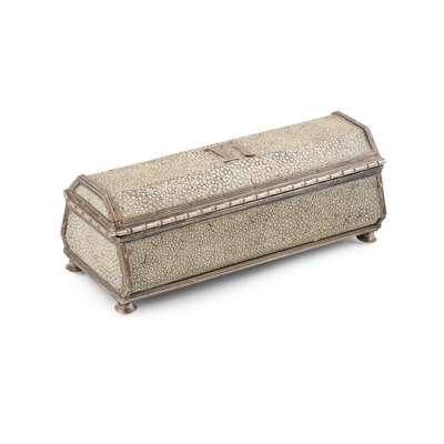 silver, shagreen, with timber lining, applied ‘H’ to lid, stamped maker's mark OR, inscribed to base OMAR RAMSDEN ME FECIT, hallmarked London 1934