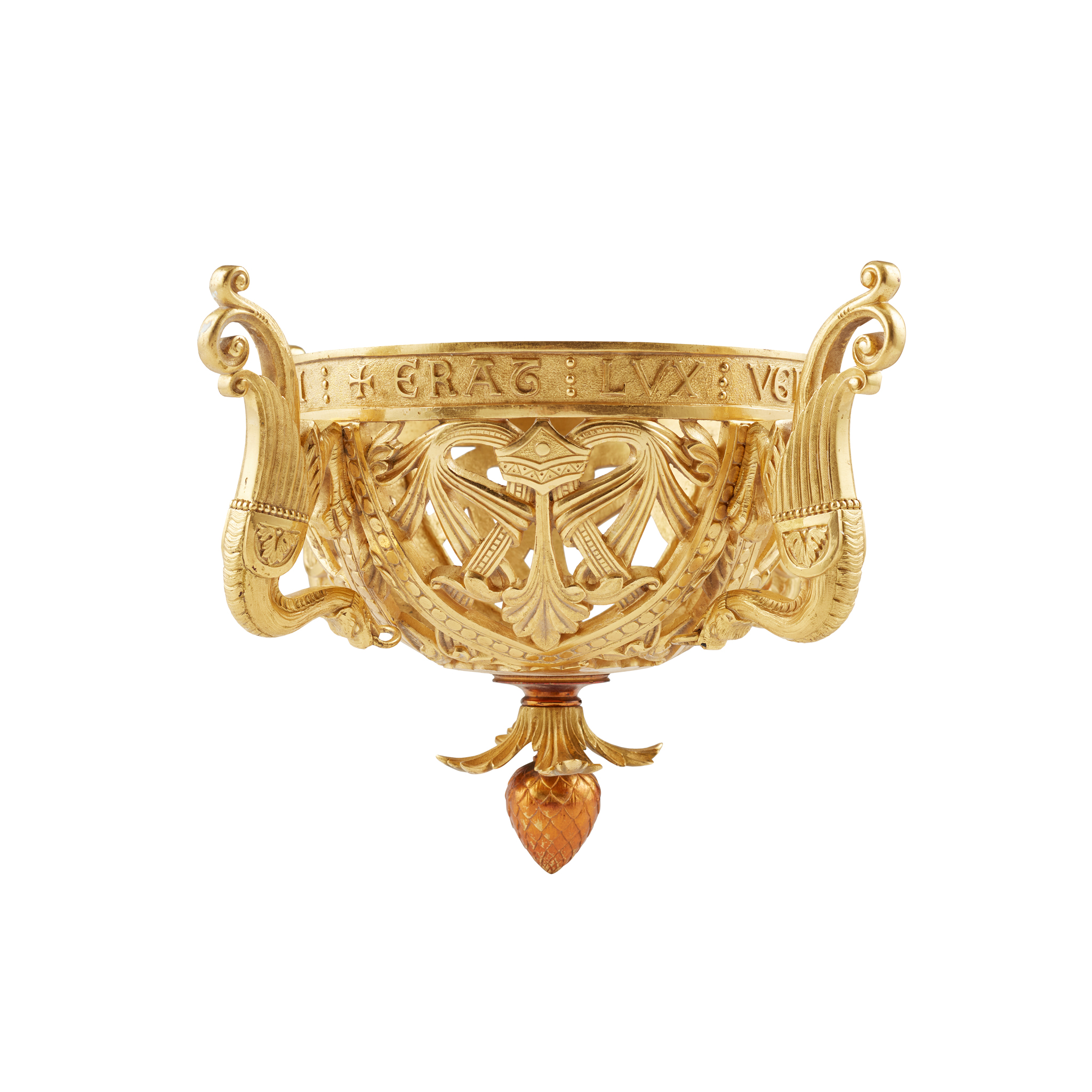 gilded brass and copper, with cast inscription ERAT LUX VERA QUAE ILLUMINAT OMNEM HOMINEM