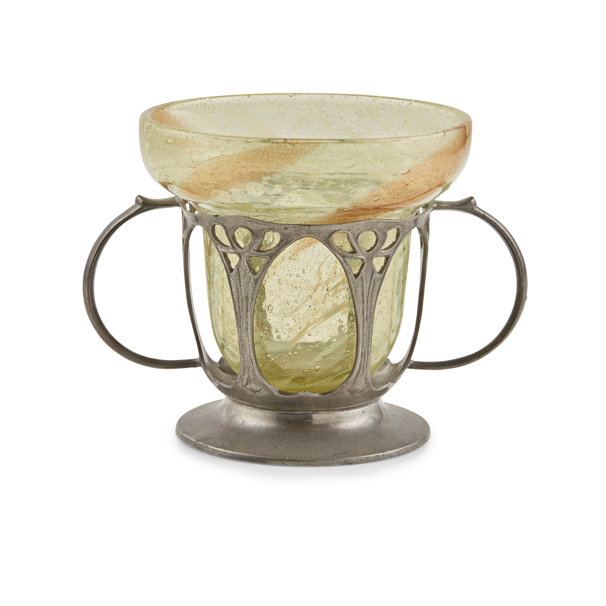 pewter, with Clutha glass bowl, by James Couper of Glasgow, stamped mark TUDRIC 0583