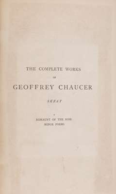 printed paper, pasted into the inside cover of THE WORKS OF GEOFFREY CHAUCER, edited by WW Skeat, Clarendon Press, Oxford, 1894