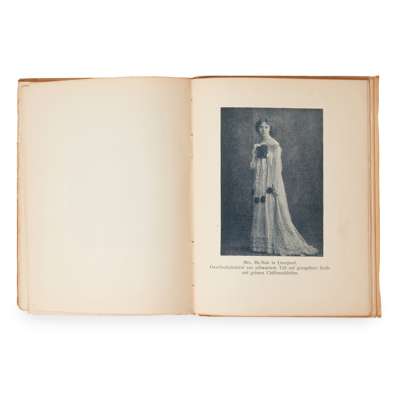 Note: This book bears an Art Nouveau binding designed by Frances Macdonald McNair, who with her husband J. Herbert McNair, Charles Rennie Mackintosh and Margaret Macdonald Mackintosh made up a group of radical artists and designers known as 'The Four'. The author Anna Muthesius and her husband Hermann, the architectural writer, became close friends with the ‘The Four’ after several trips to Glasgow and the Willow Tearooms. The book is considered a seminal text in the development of early twentieth-century women’s fashion. Muthesius believed women should have the freedom to choose their own clothes, styling and fabrics. Emphasis was placed on the rejection of the heavy, restrictive Victorian fashions of the day. The movement was also political in its aims, and part of wider societal moves to liberate women in both the public and private spheres. The book and the form of dressing that it championed represented an outlet for radical expression for women and aligned itself well with McNair’s artistic representation of the female form. The dresses were usually made by their designers and the book includes plates showing the Macdonald sisters wearing such dresses along with similar examples designed by Jessie Newbery and worn by her daughters, Mary and Elsie. The original pencil drawing for the cover image was sold in these rooms on 3rd November 2020, lot 361.