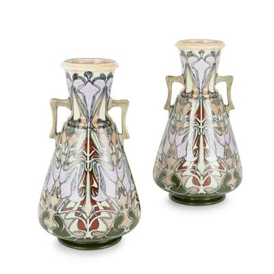 PAIR OF ART NOUVEAU TWIN-HANDLED VASES, CIRCA 1900