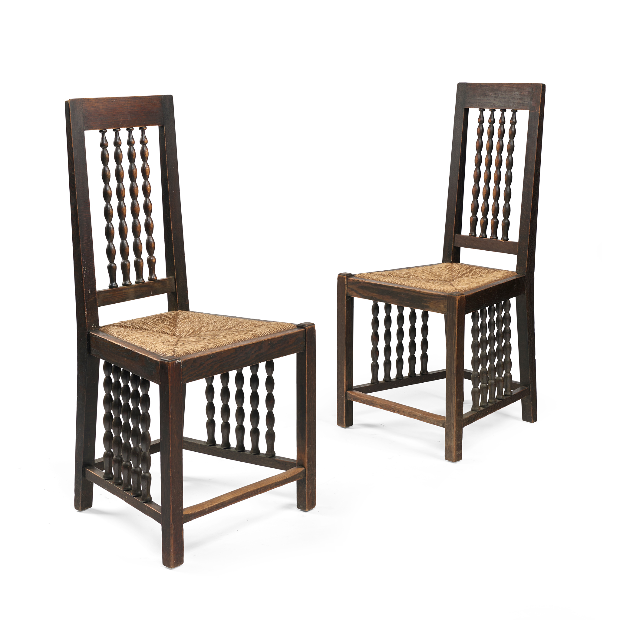 oak, the chairs with drop in rush seats, incised marks H V/ W
