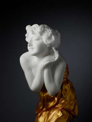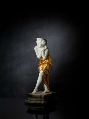 bronze, with later gilt patination, marble, raised on a moulded marble base