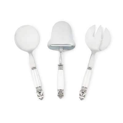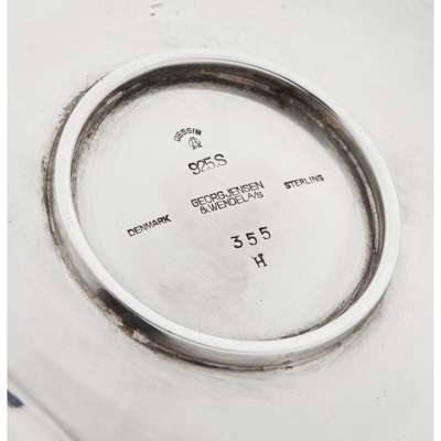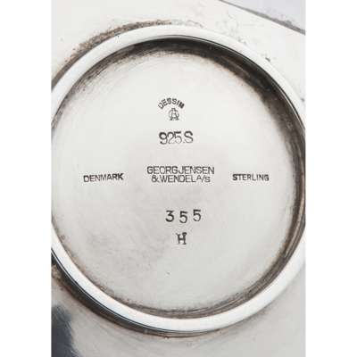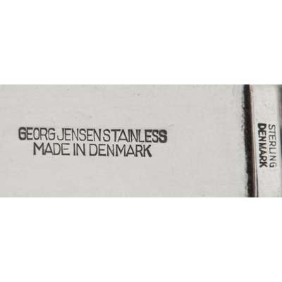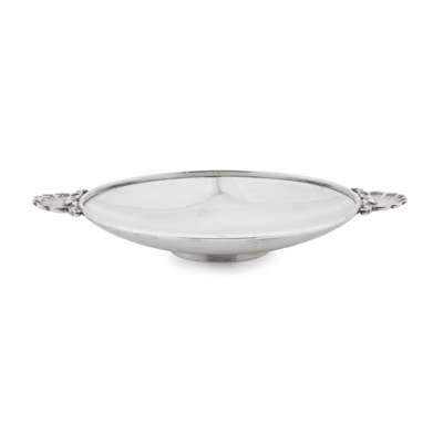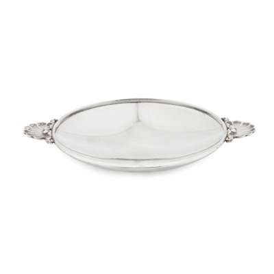 sterling silver and stainless steel, 20cm long; a GEORG JENSEN CHEESE SLICER, 20.5cm long, each stamped GEORG JENSEN/ STERLING/ DENMARK, 2cm high, 16.2cm wide; together with GUNDORPH ALBERTUS (DANISH 1887-1969) FOR GEORG JENSEN & WENDEL, DISH, silver, stamped 925S / STERLING / DENMARK (4)