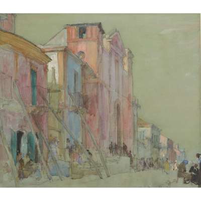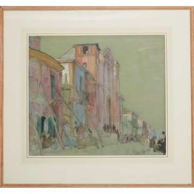 Note: In 1908 there was a massive 7.1 earthquake in the southern tip of Italy and Northern Sicily in which up to 82,000 lives were lost. After the earthquake, Brangwyn went to Messina, and created fifty watercolours recording his experiences of the event.