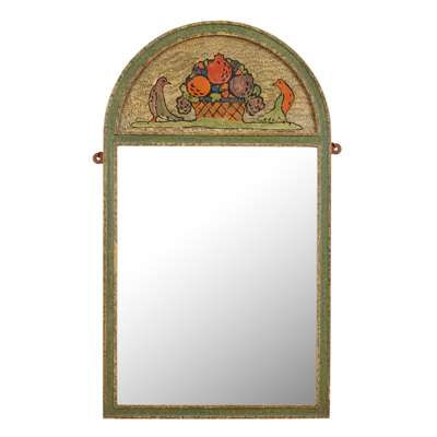 painted wood, mirror plate, bears maker's label verso