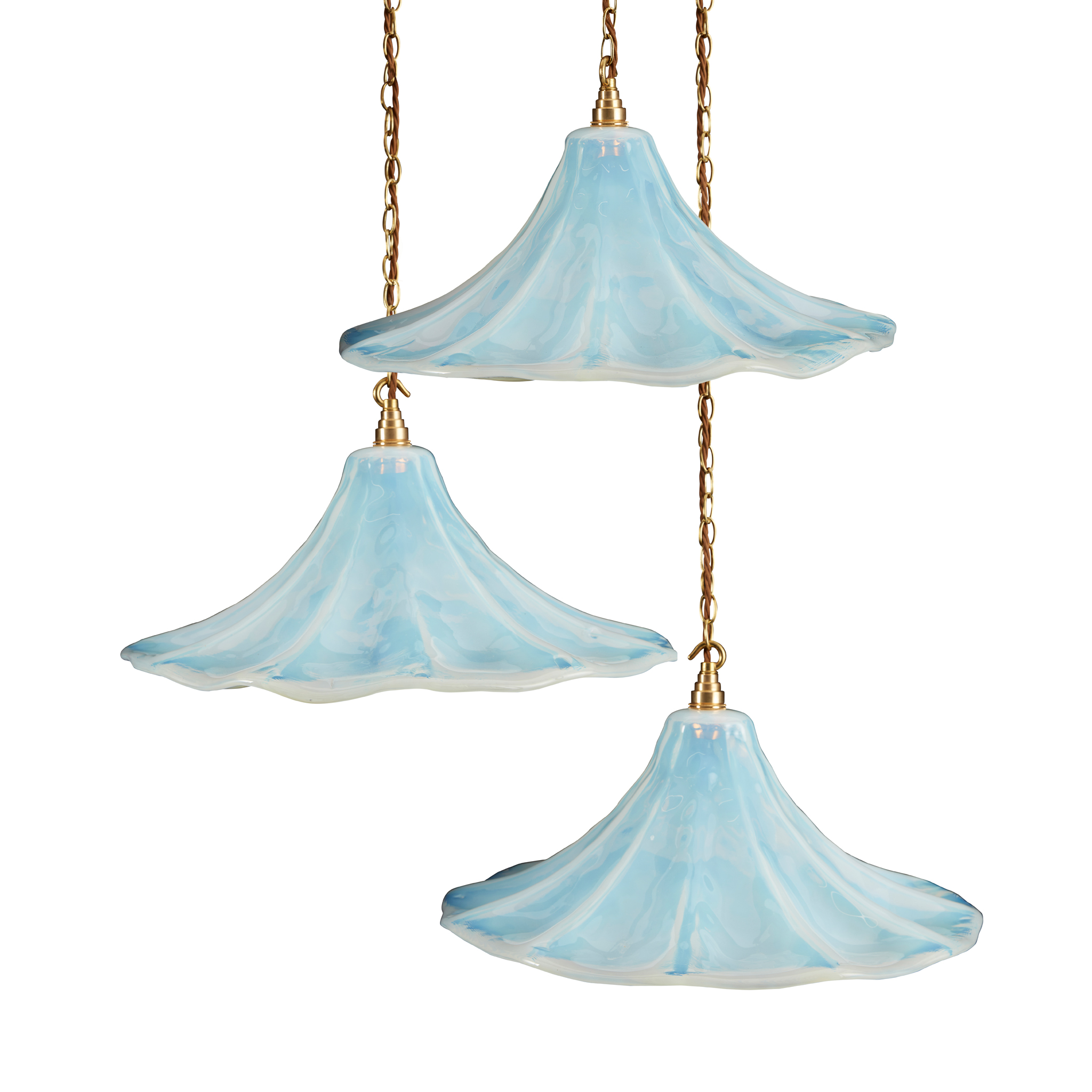 opalescent glass, brass hanging chains (3)