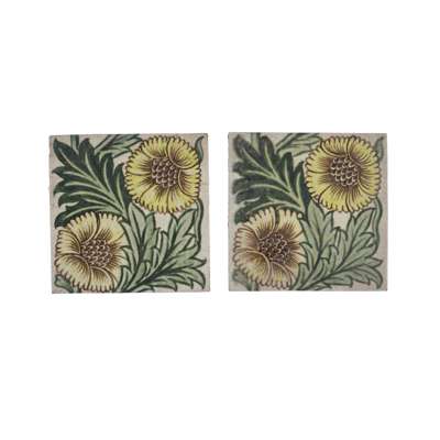 PAIR OF ARTS & CRAFTS TILES, EARLY FULHAM PERIOD, CIRCA 1888