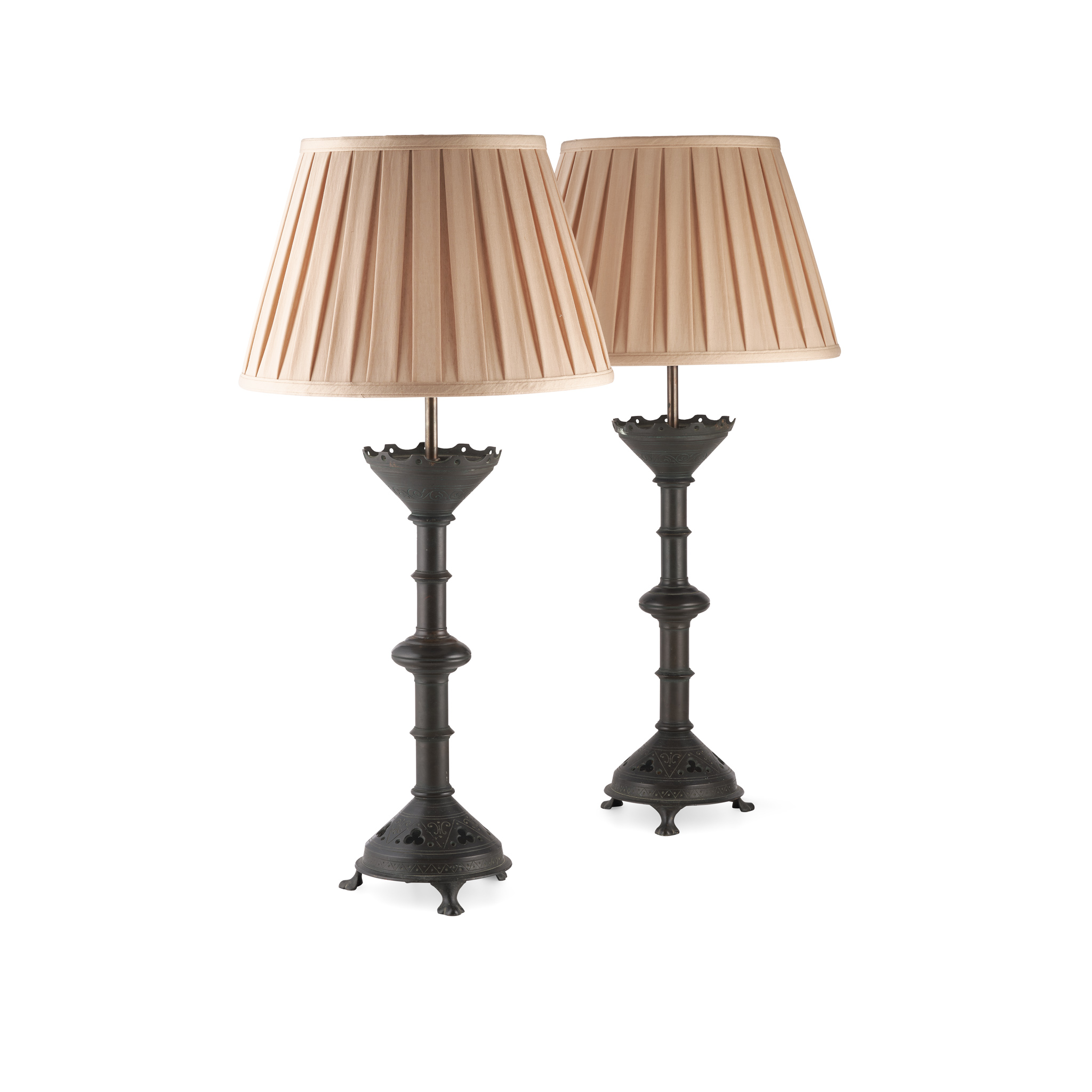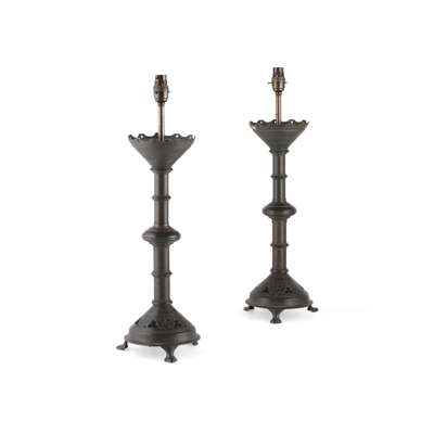 PAIR OF GOTHIC REVIVAL CONVERTED CANDLESTICKS, CIRCA 1880