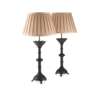 patinated bronze, later converted to table lamps, with associated pleated silk shades (2)