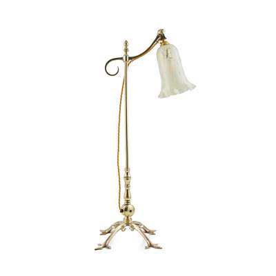 brass, with associated opalescent glass shade, indistinctly stamped maker's mark
