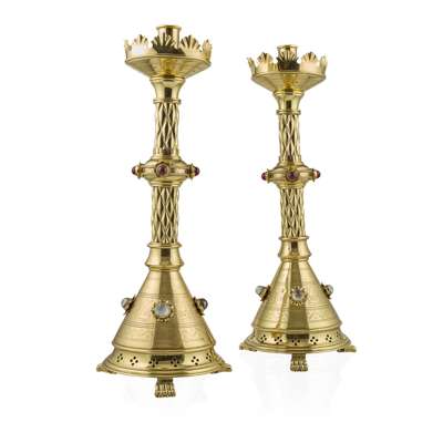 LARGE PAIR OF GOTHIC REVIVAL ALTAR CANDLESTICKS, CIRCA 1880