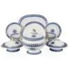 printed and glazed earthenware, comprising ELEVEN DINNER PLATES, 26.7cm diameter; ELEVEN SOUP PLATES, 26.3cm diameter; TWO VEGETABLE TUREENS & COVERS, 29cm wide; a SOUP TUREEN, COVER AND STAND, stand 38cm wide, tureen 27cm high; and a LARGE SERVING DISH, 47cm long, each printed GOTHIC, impressed NEW STONE/ BB (28)