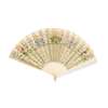coloured silks reserved on a silk satin ground, with paper backing and bone sticks, with original box inscribed IN COMPETITION FOR THE OWEN JONES PRIZES, bears paper label with indistinct artist's name FENTON