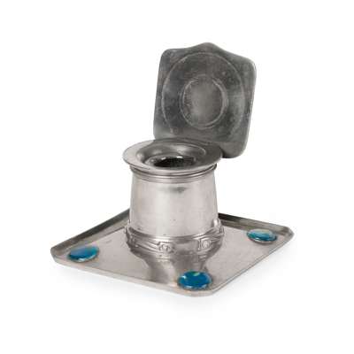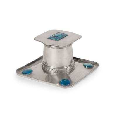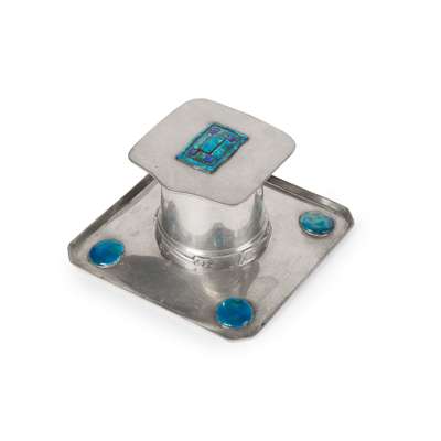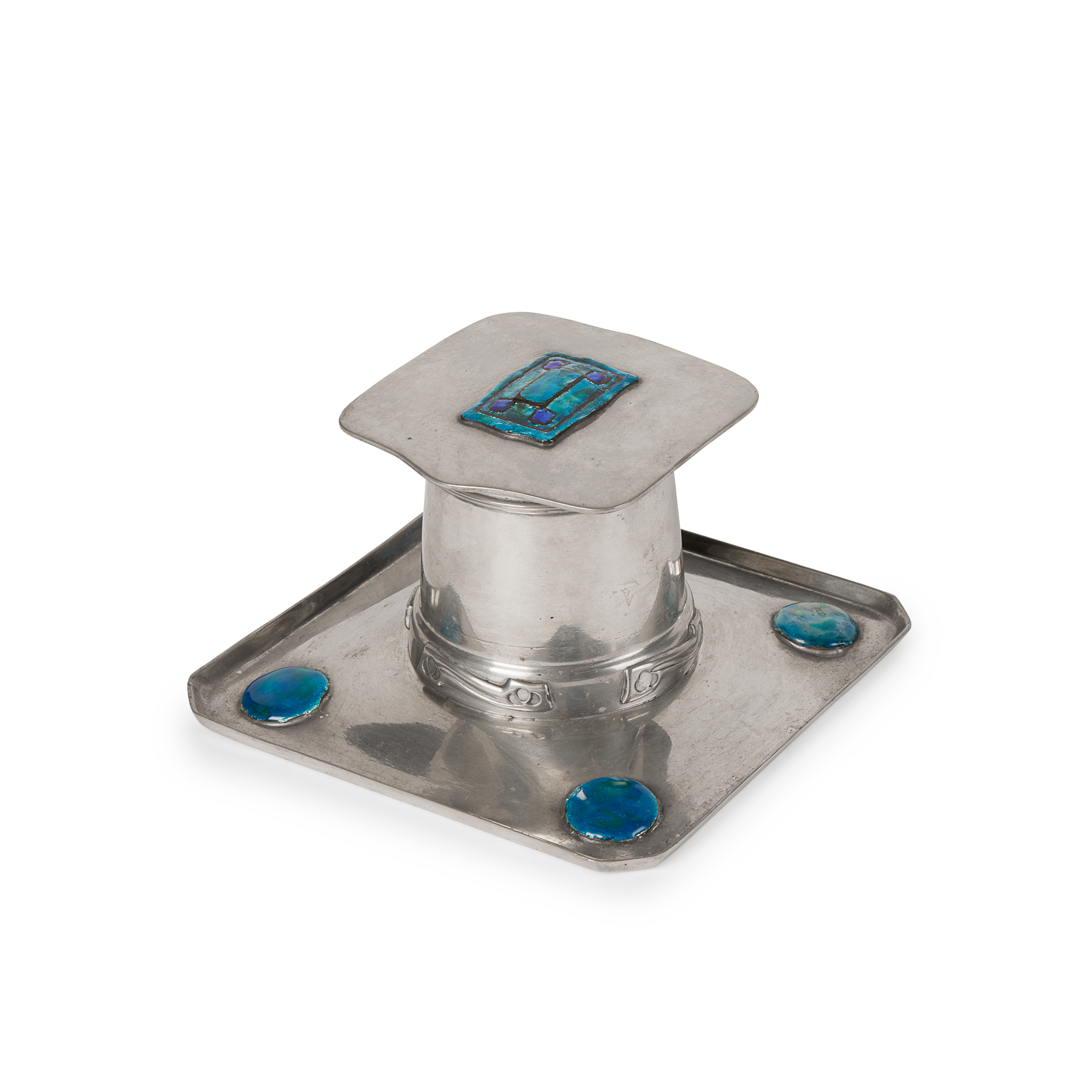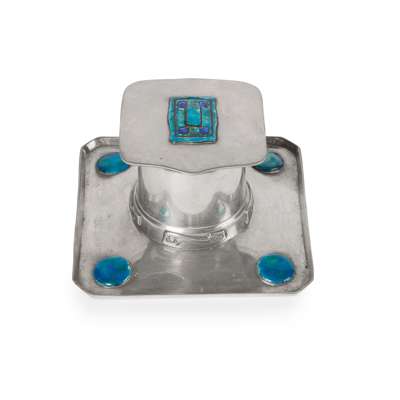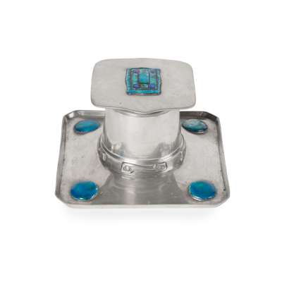 pewter and enamel with glass insert, stamped TUDRIC/ 0141