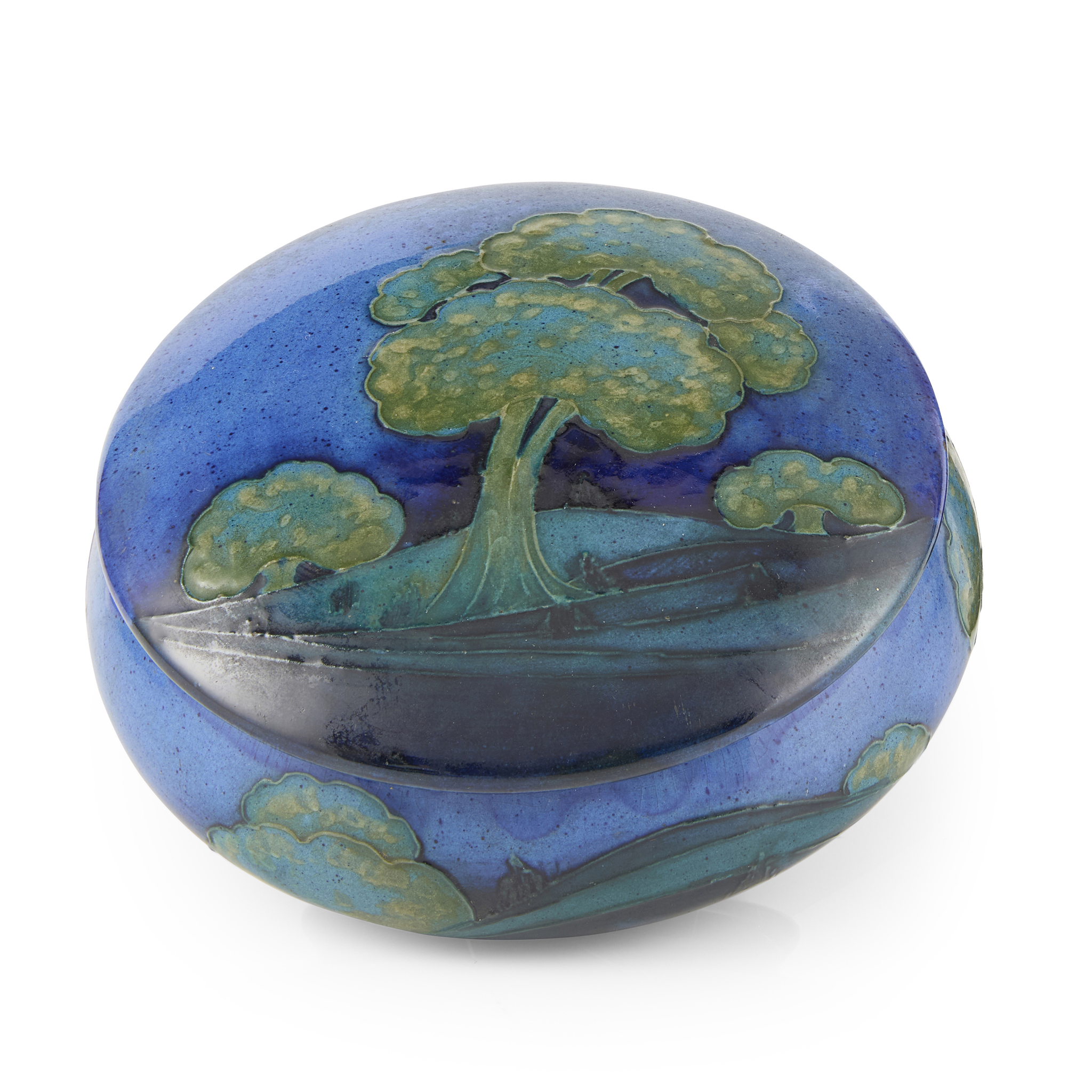 'MOONLIT BLUE' POWDER BOX & COVER, CIRCA 1930