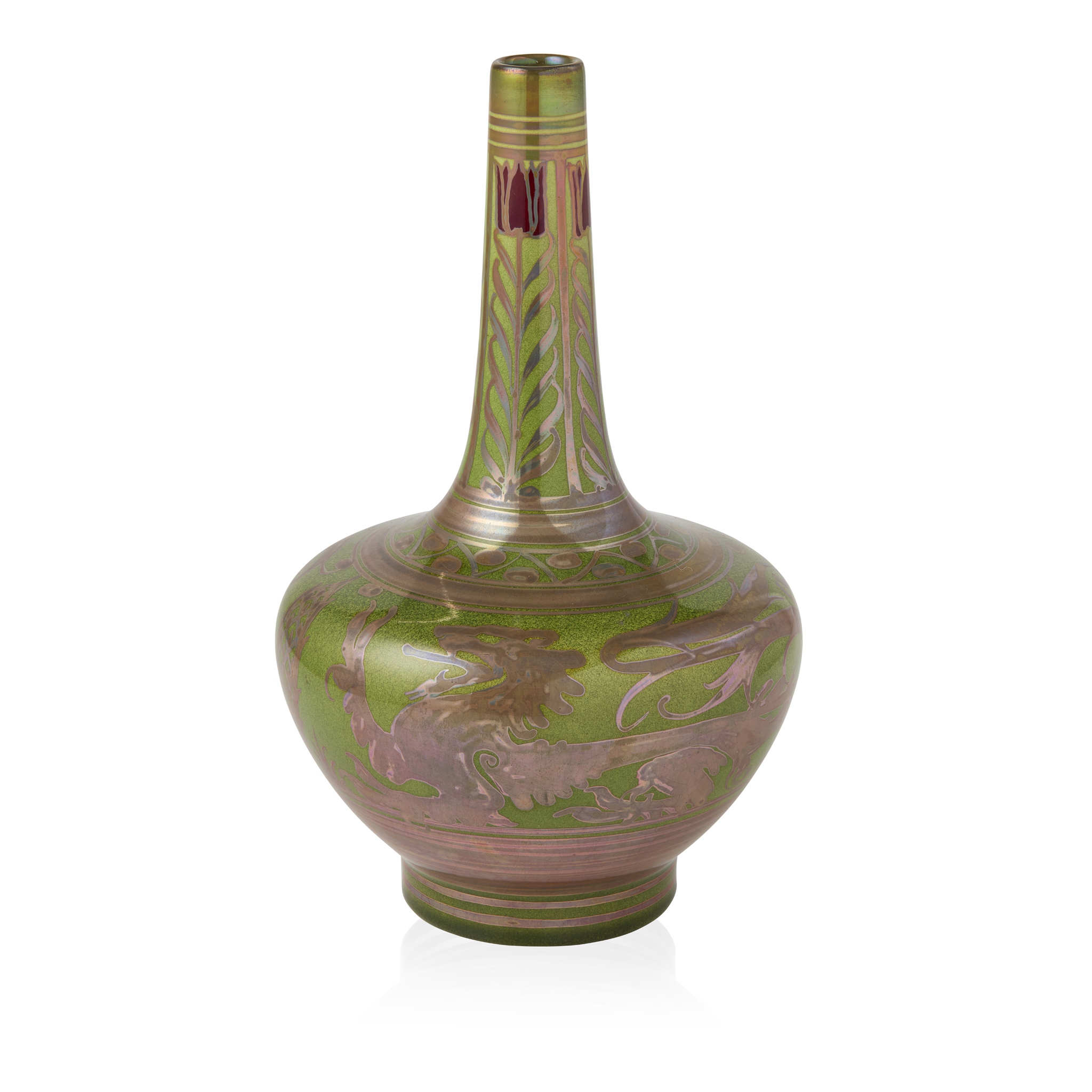 LANCASTRIAN LUSTRE BOTTLE VASE, 1911