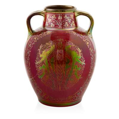 LANCASTRIAN LUSTRE TWIN-HANDLED VASE, 1907