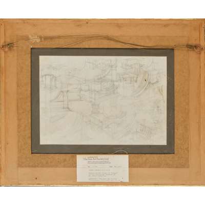 red chalk and pencil on paper (designs for a monument in pencil verso)