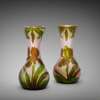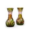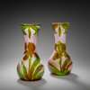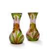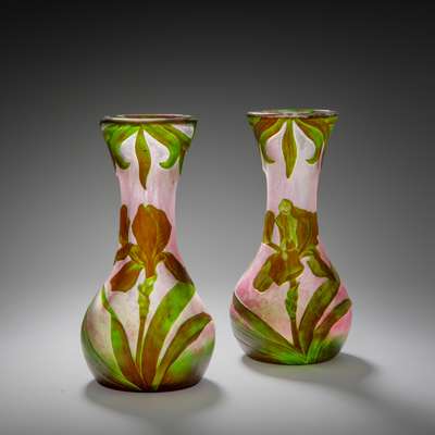 pink glass overall in green, acid-etched and carved, one engraved E. MICHEL, one unmarked (2)