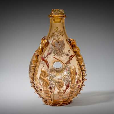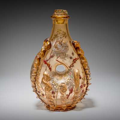 smoky glass, acid-etched, enamelled with gilt highlights and applied decoration, engraved E GALLÉ NANCY (2)